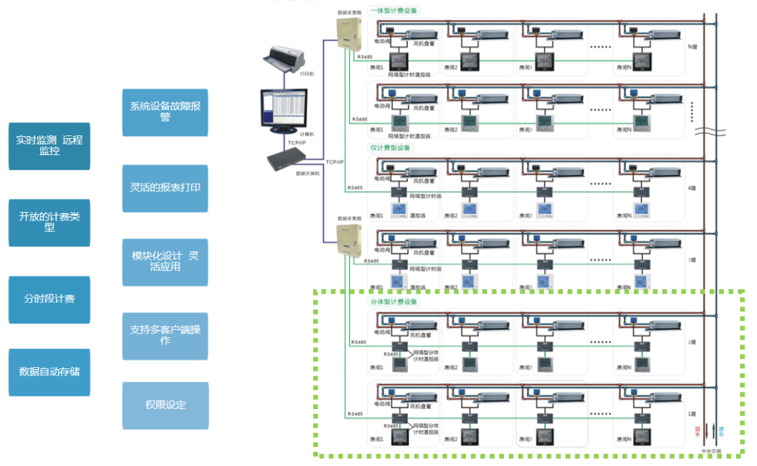 公攤監(jiān)控計費單價=(用電費用+用水費用+管理費+設備折舊基金+設備維修基金+附加費)/(全部風盤末端用量累計和)核定單價:我們將協(xié)助管理員根據(jù)現(xiàn)場設備、環(huán)境以及用戶使用情況,通過與用戶協(xié)商并實地核定。