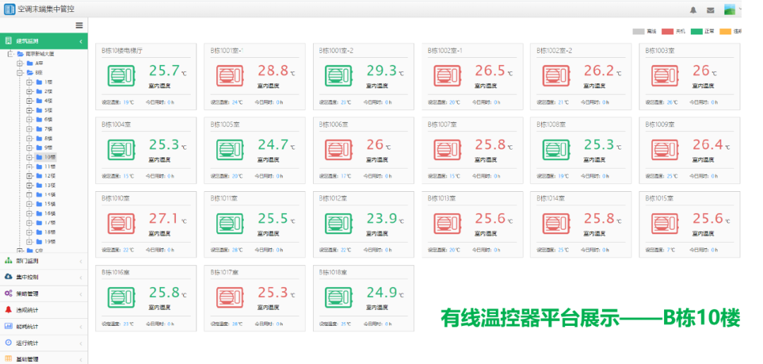 2、更換樓內(nèi)2100個房間的中央空調(diào)智能溫控面板,并對ABCD座末端溫控器及配套設(shè)備進行安裝調(diào)試,并集成至綜合能源管理平臺中