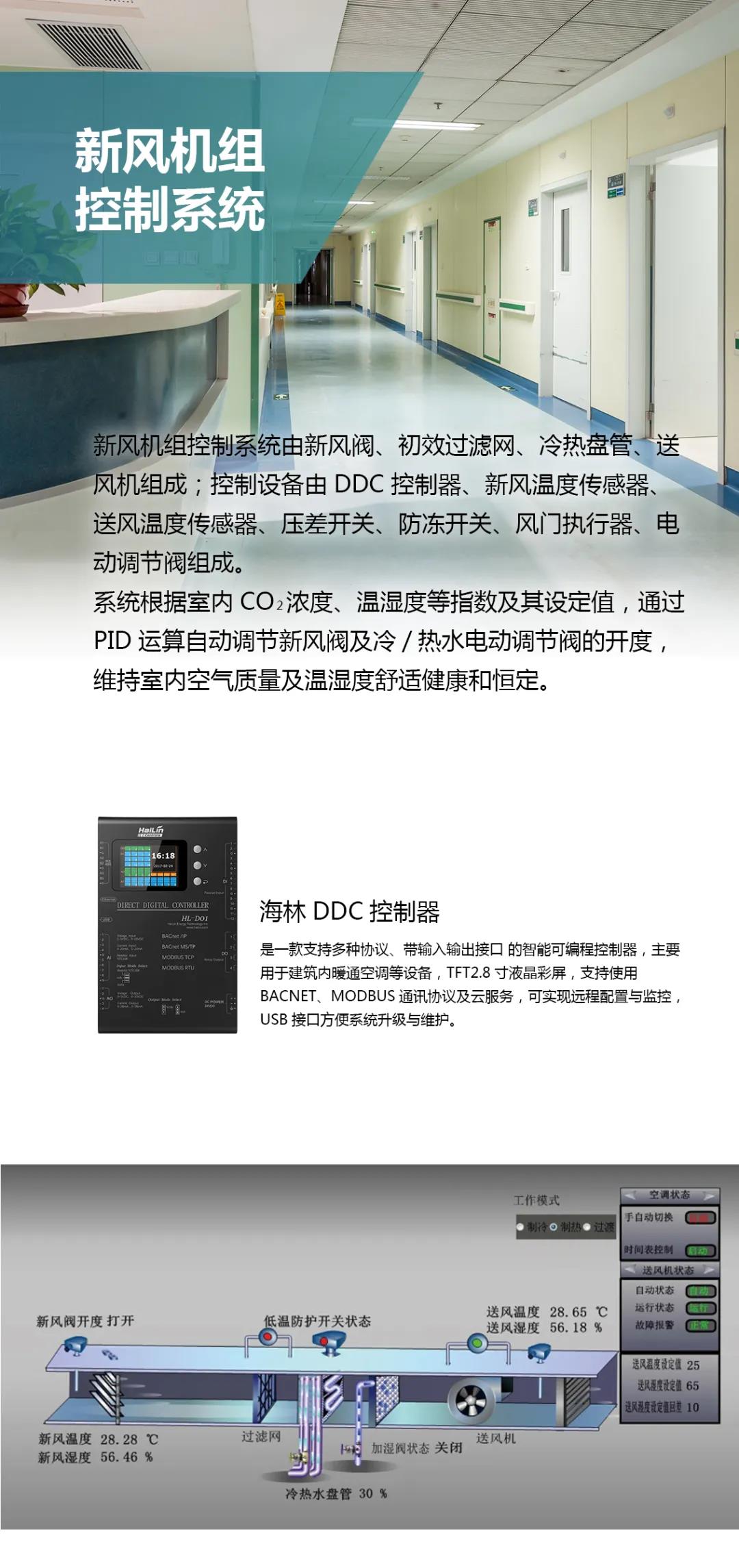 海林節(jié)能作為暖通自控設備供應商,為河間市人民醫(yī)院提供了中央空調(diào)末端集控系統(tǒng)、水力平衡系統(tǒng)、新風控制系統(tǒng)等技術和設備,為醫(yī)院營造舒適健康和節(jié)能的高品質(zhì)環(huán)境。