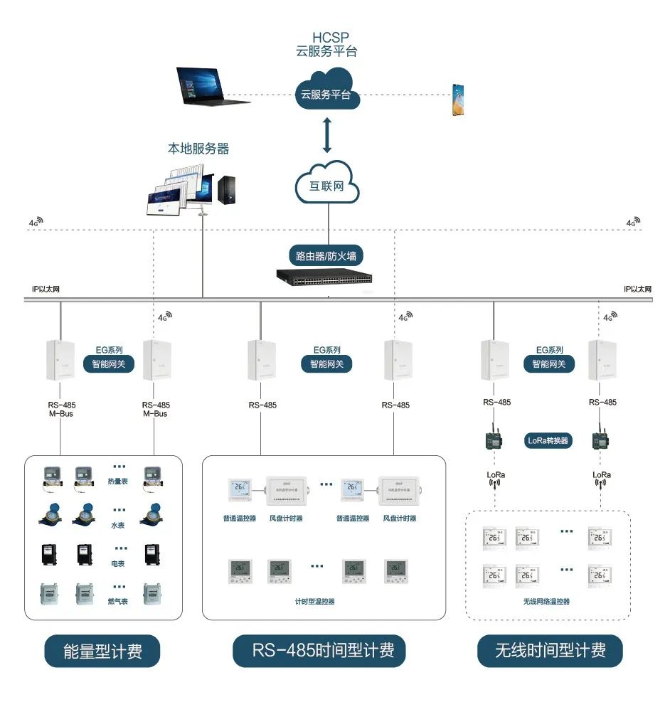 能量型計費方式通過計量用戶中央空調(diào)使用能量收取費用,通過供冷、供暖管道中安裝熱量表,直接讀取用戶的計量數(shù)據(jù);NB-IoT是IoT領(lǐng)域基于蜂窩的窄帶物聯(lián)網(wǎng)的一種新興技術(shù),因NB-IoT自身具備的低功耗廣覆蓋、低成本、大容量等優(yōu)勢,本項目采取NB超聲波熱量表,讓項目安裝省時省力、高安全、高可靠。為該項目智能管控,合理收費,做出解決方案。