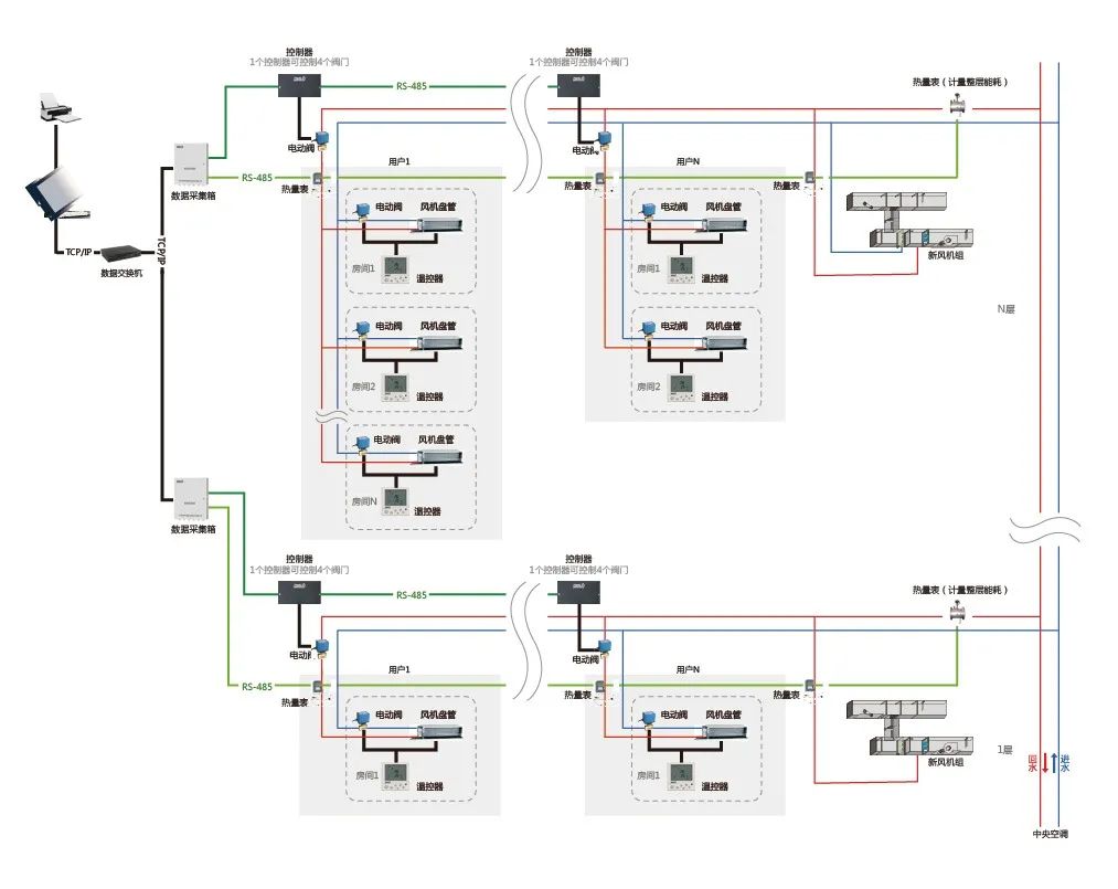 通過計量用戶使用中央空調(diào)的能量收取費用,通過供冷、供暖管道中安裝熱量表,直接讀取用戶的計量數(shù)據(jù)。