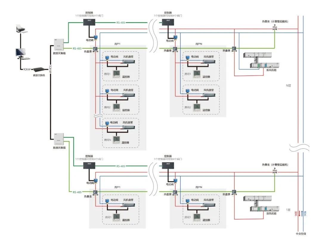 海林HNTS末端溫控器集控系統(tǒng)集自動(dòng)化控制技術(shù)、計(jì)算機(jī)網(wǎng)絡(luò)技術(shù)于一體,可同時(shí)集中或獨(dú)立對(duì)多臺(tái)末端設(shè)備的啟停、水閥的開(kāi)閉及溫度設(shè)置進(jìn)行控制。有三種聯(lián)網(wǎng)集控方式:RS-485 有線方式、 LoRa 無(wú)線方式和 Wi-Fi 無(wú)線方式。