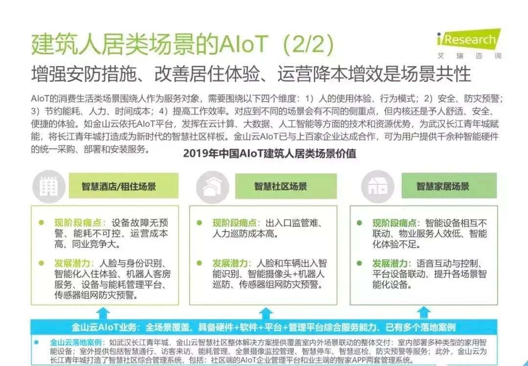 近日,艾瑞咨詢與金山云聯(lián)合發(fā)布《2020年中國(guó)智能物聯(lián)網(wǎng)(AIoT)白皮書》。白皮書對(duì)未來(lái)AIoT的應(yīng)用愿景進(jìn)行了描繪,對(duì)行業(yè)應(yīng)用場(chǎng)景及發(fā)展空間進(jìn)行了分析,旨在將向市場(chǎng)提供更多的參考依據(jù)。