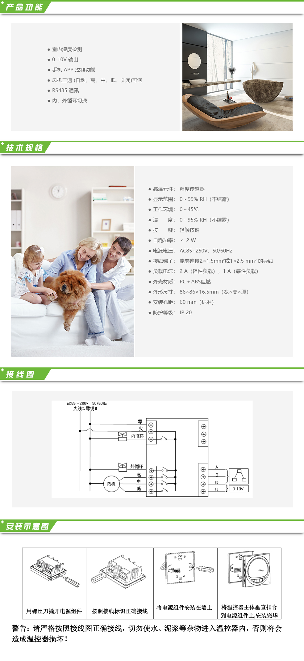 豪華型大液晶顯示新風(fēng)控制器,可通過無線 APP 遠程操控,適用于工業(yè)、商業(yè)及 家庭居室的新風(fēng)控制,可選擇風(fēng)機為室內(nèi)、室外循環(huán)模式,風(fēng)機三速(自動、高、中、 低、關(guān)閉)可調(diào),帶 RS485 通訊轉(zhuǎn)換控制。 新風(fēng)控制器采用微電腦控制技術(shù),大屏幕液晶顯示,可從云端獲取室內(nèi)環(huán)境信息 并可通過液晶顯示:PM2.5 濃度顯示(ug/m3)、濕度顯示(%RH)、CO2濃度顯示(PPM)、 時鐘顯示 ...