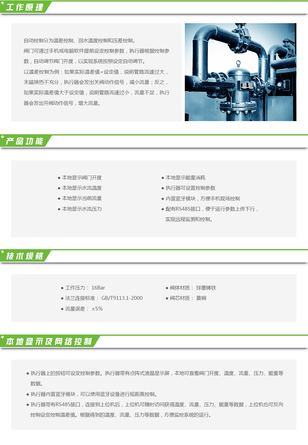 智慧調(diào)節(jié)閥是基于嵌入式軟件、傳感技術(shù)、人工智能算法、流體模擬計(jì)算等技術(shù),結(jié)合傳感器、智能控制器、執(zhí)行器和調(diào)節(jié)閥等產(chǎn)品優(yōu)勢,實(shí)現(xiàn)智能化操作的閥門裝置??蓱?yīng)用于建筑管網(wǎng)內(nèi)用水的溫差、回水溫度及壓差的調(diào)節(jié)控制。